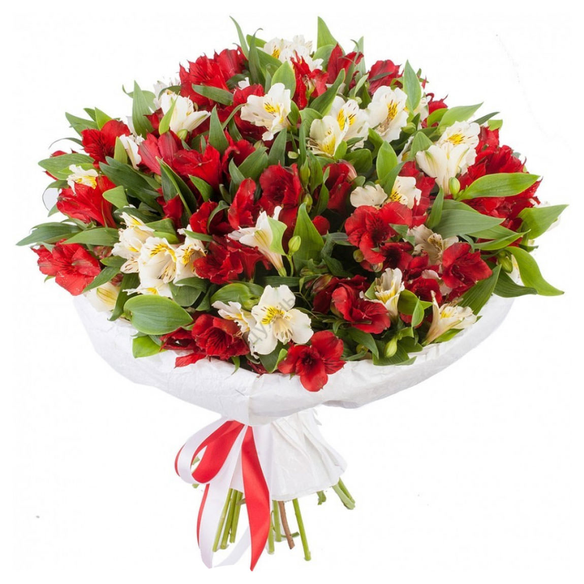 Альстромерии белые и красные.